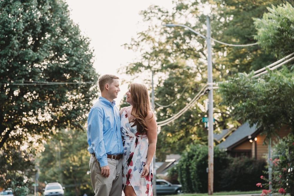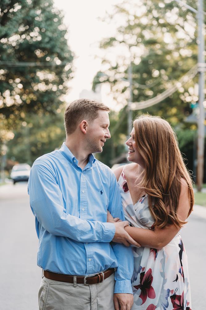 Cam and Leslie decided on Downtown NoDa for their engagement session. NoDa is a small district in the heart of Charlotte with an eclectic and artistic vibe, delicious food, and even better breweries. NoDa has always been one of my favorite places to shoot because of the versatile backdrops it has to offer. Not only do you have beautiful murals on the sides of restaurants and small businesses, there is also amazing views of the Charlotte skyline while you’re walking the streets of the neighborhood. Cam and Leslie wanted their session here because it was somewhere they both hold near and dear to their hearts. They live in the immediate area, and Downtown NoDa is where they spend a lot of their time together as a couple.